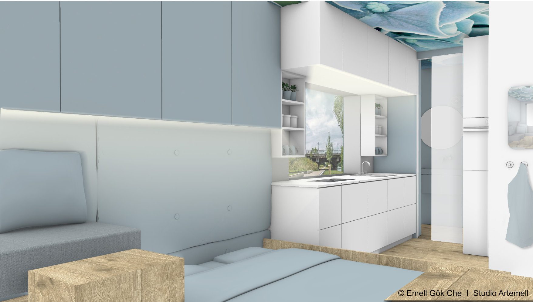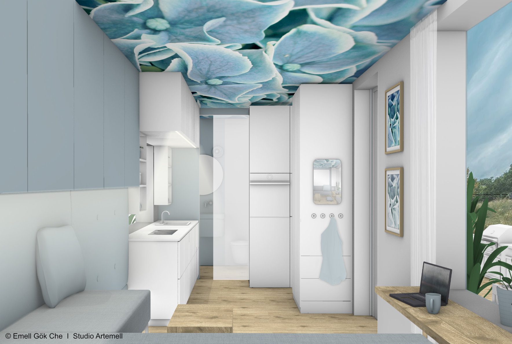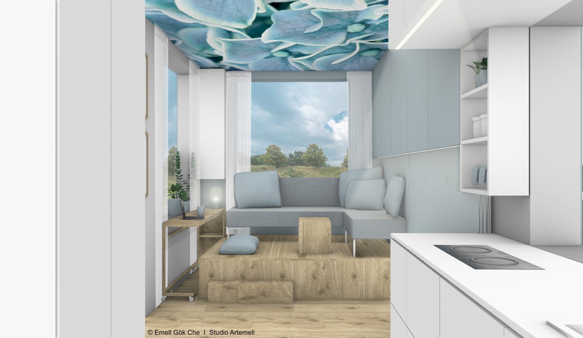 The Peace House Project is a concept to create and provide a tiny house with aspiration for a space of peace and modern, sustainable living, which has the ambitious goal to provide sustainable living for all, globally applicable, with a focus on conserving resources and providing a healthy environment. The first peace house is an 18.2 sq meter tiny house with a patio designed to be energy efficient with environmentally conscious materials and sustainable appliances aimed to reduce one’s footprint on the surrounding ecology. While ordinary homes are compartmentalized, this home is small but is an open and fluid living space free from clutter to reflect and venture into the open space beyond, closer to nature. It is not only about creating a solitary, static space for reflection; instead, the peace house is an invitation to explore what peace means to you and is a frame for the process of finding out the necessity for that peace. The world in which we now live is overwhelming. In contemporary society people are focused on so much and at the same time so little. The world is vast and yet fits in our pocket. Therefore, the central question in this project is what do we really need in our lives to live peacefully? Those questions are explored through reflection and are tied to our inner peace. We find a house and turn it into a home based on who we share our lives with and the materials we fill a space with. However, why not build a space around us that inspire us to think about peace? The peace house is not just a house designed for one to live but is also the development of a conceptual framework of peace. How can we design a new way of living that doesn’t confine to space, rather focused on peace, community, sustainability, and functionality? A personal temple of peace.