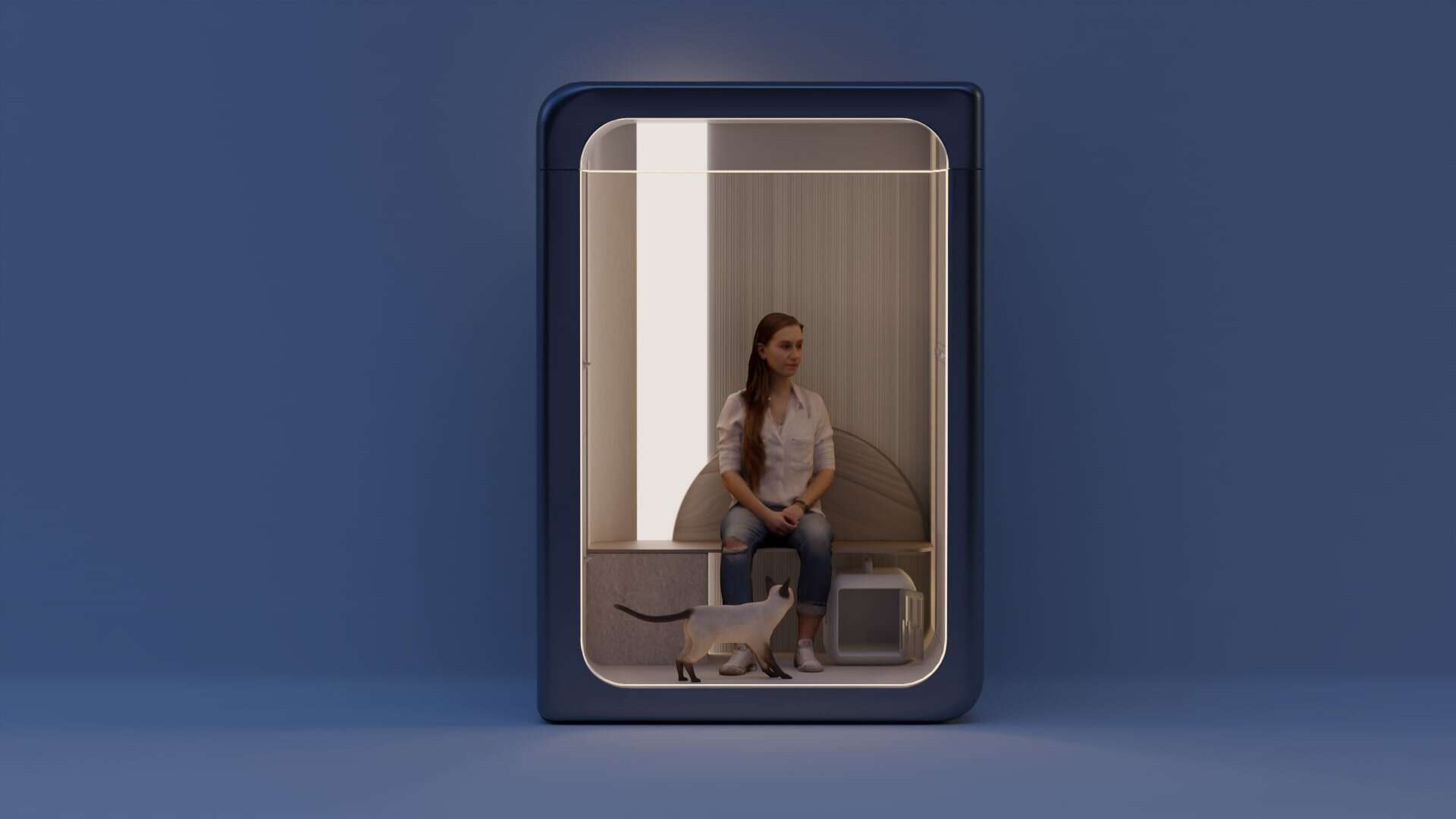PodNest is a safe and comforting space created for alleviating the stress on your loved pets in public spaces such as airports and hospitals. With its door locked, the electric glass of PodNest will instantly switch from transparent to an opaque state and provides privacy and noise reduction, so you don’t need to worry about your pet feeling anxious about the surroundings or yowling in the public.