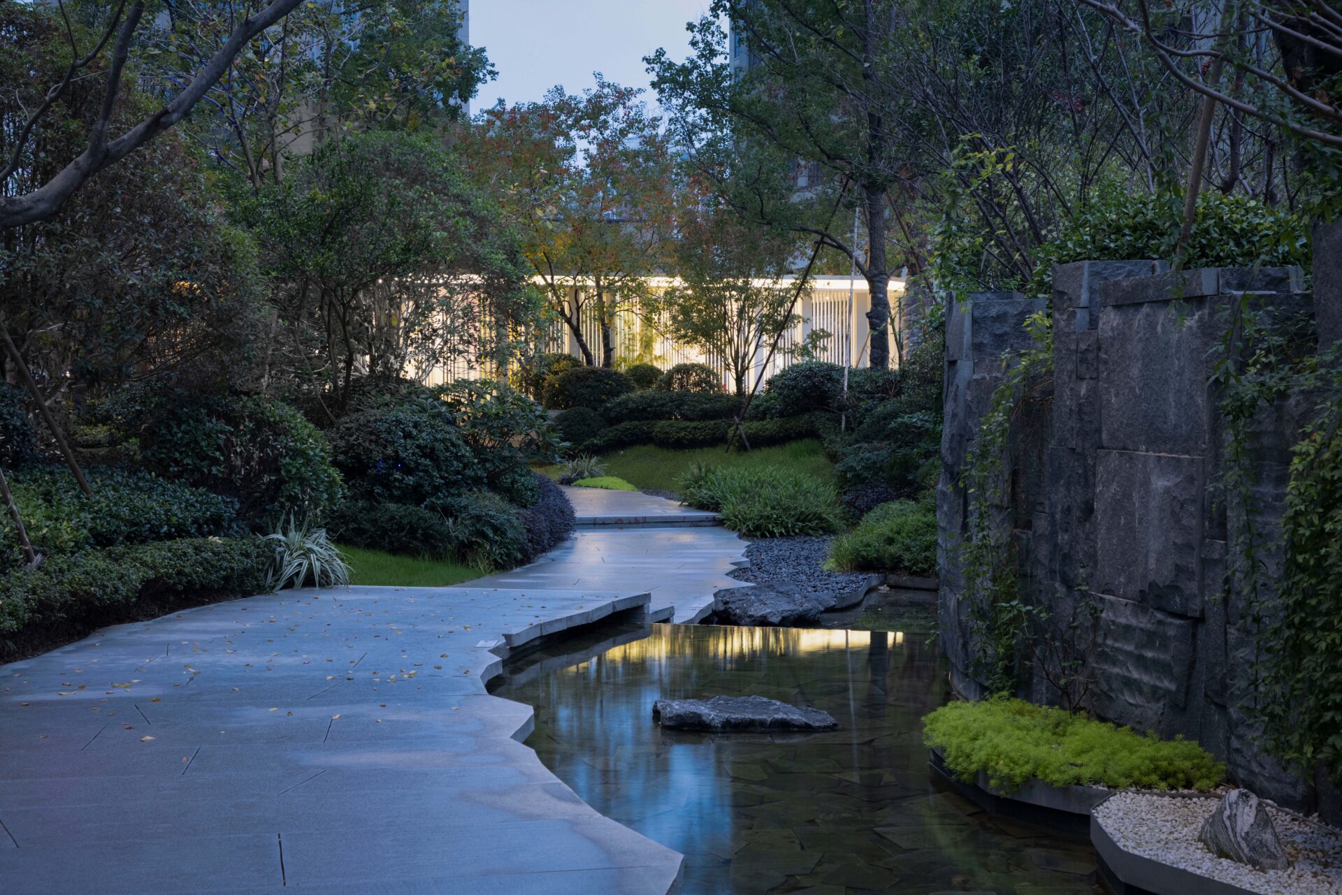 With the Dongguan and Xigu mountains as the base, the natural green veins of the forest are continued, linking the beauty of Xianju Yongan Valley to create a modern liberal genre romantic holiday residence. The natural base of "mountain - forest - valley" is taken as the design element, and the rhythm of nature is presented in a modern landscape design approach to create a unique valley life. The overall path of the garden uses a zigzagging linear form to create the experience of wandering through the valley space. The natural paths of the valley are created with nature as the base, and the whole natural space is brought to life through the natural patchwork ground, the high and low walls, the gurgling stream and the quiet and mysterious gates. The space is decorated and enriched by the original landscape base, with floating art structures, tropical coconut plants and light holiday soft furnishings. Escape the hustle and bustle of the city and feel the peace and greenery of the valley.