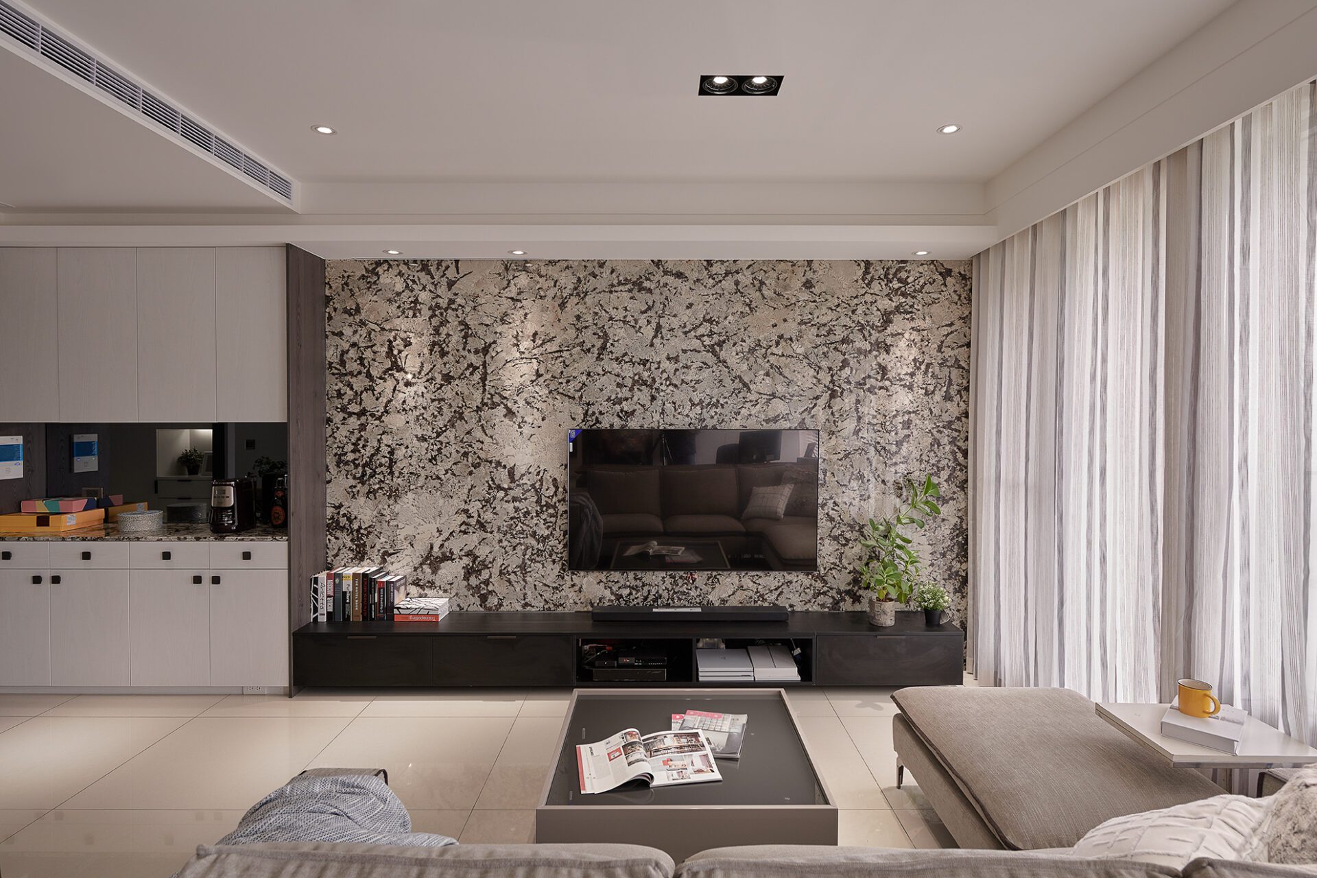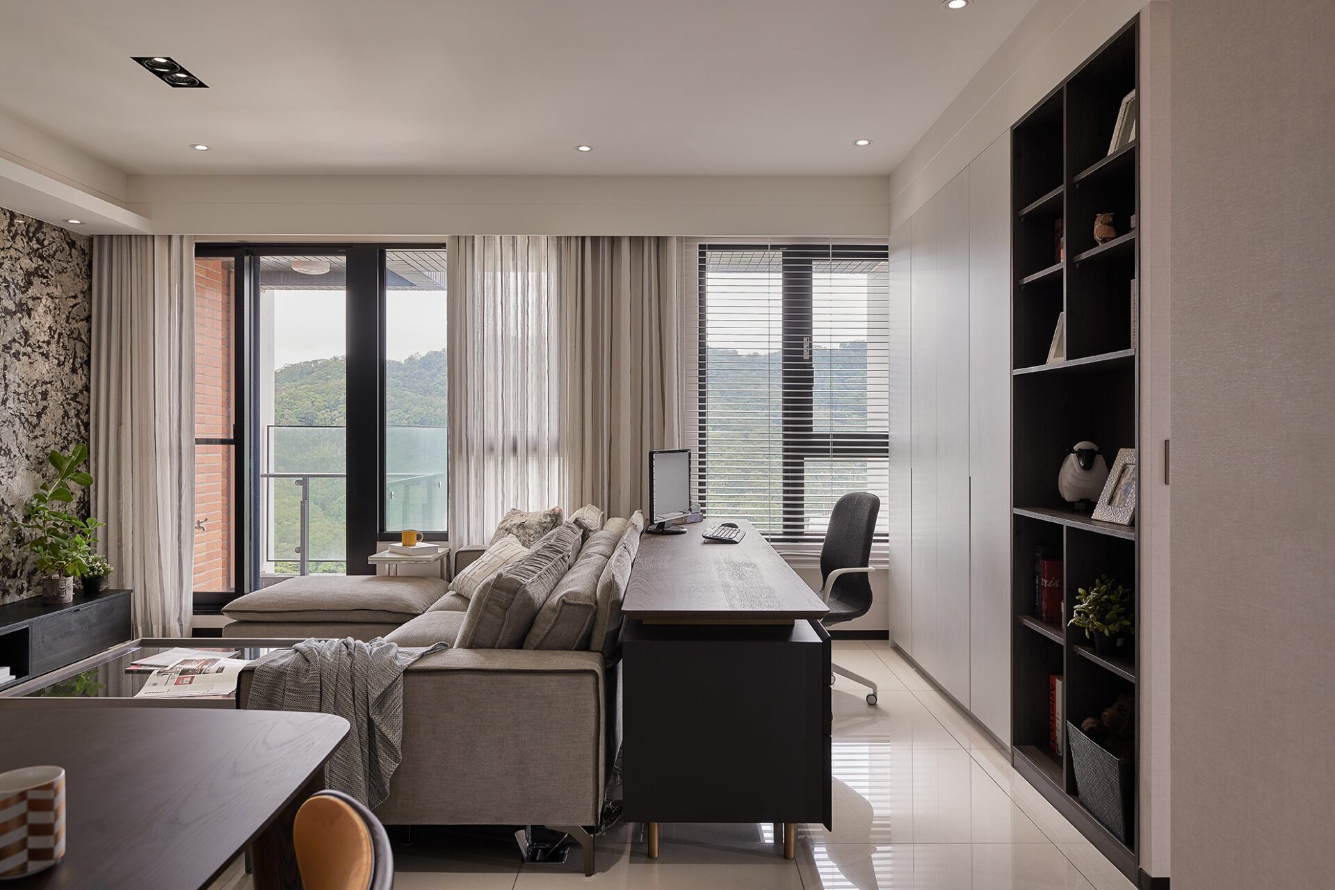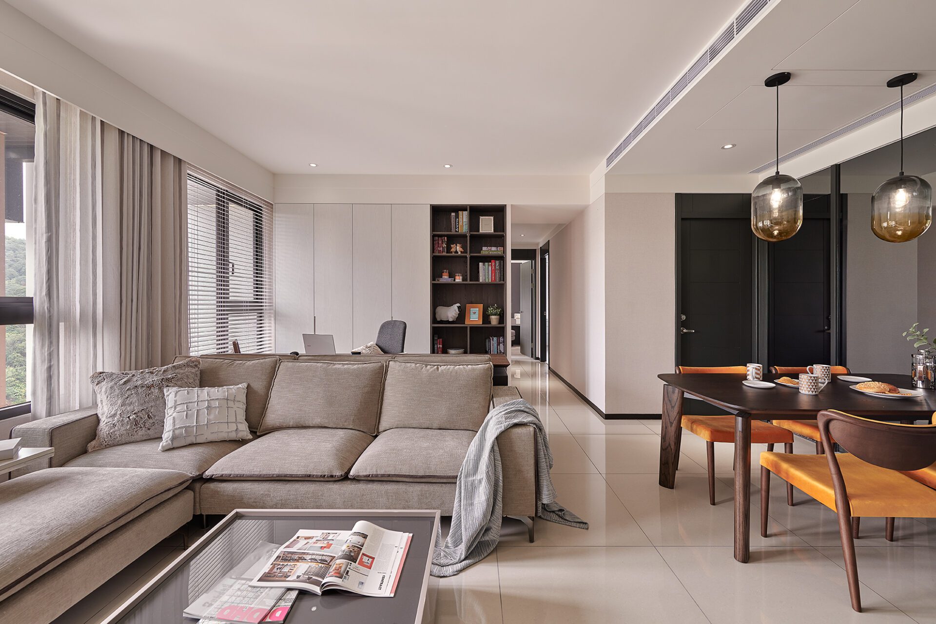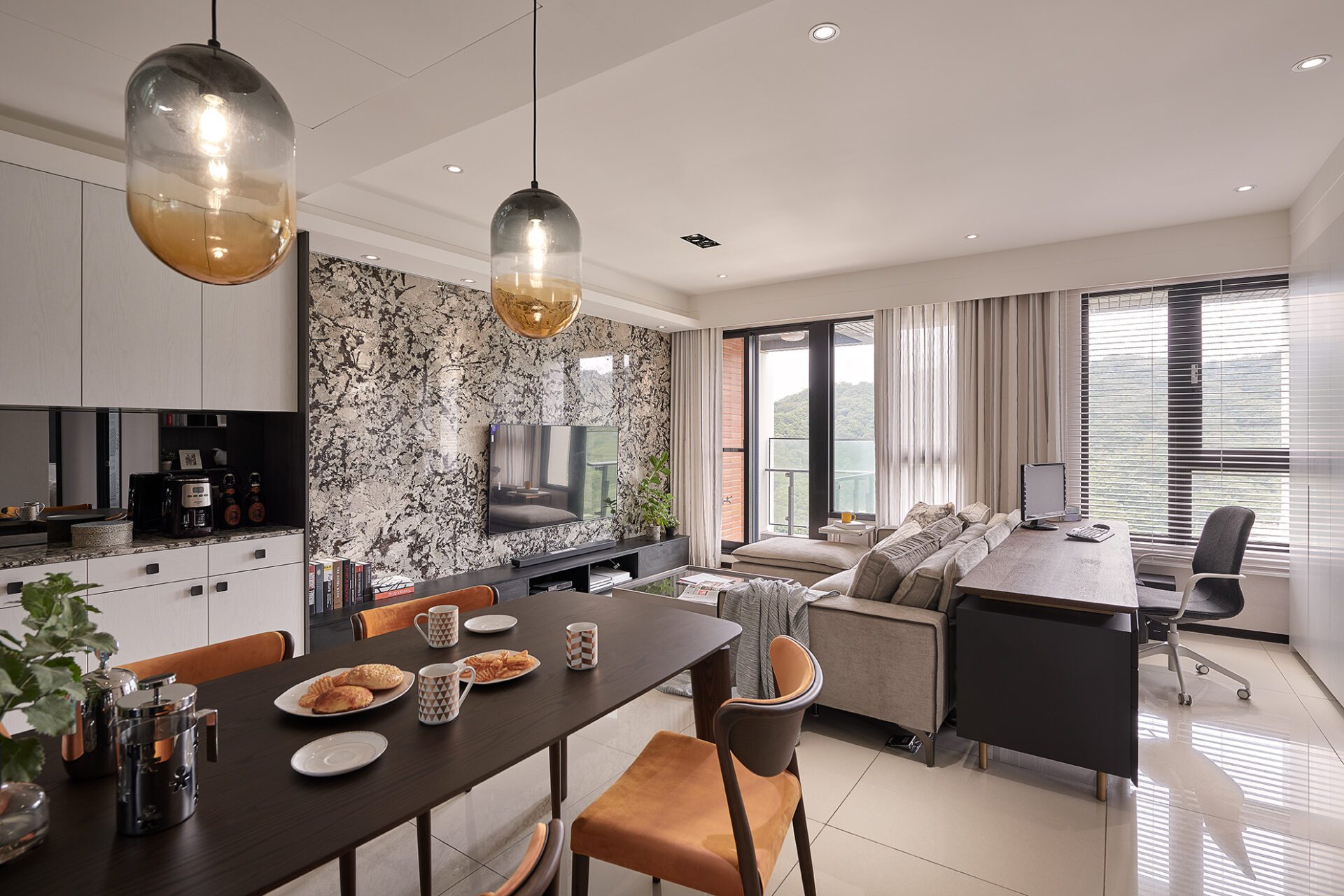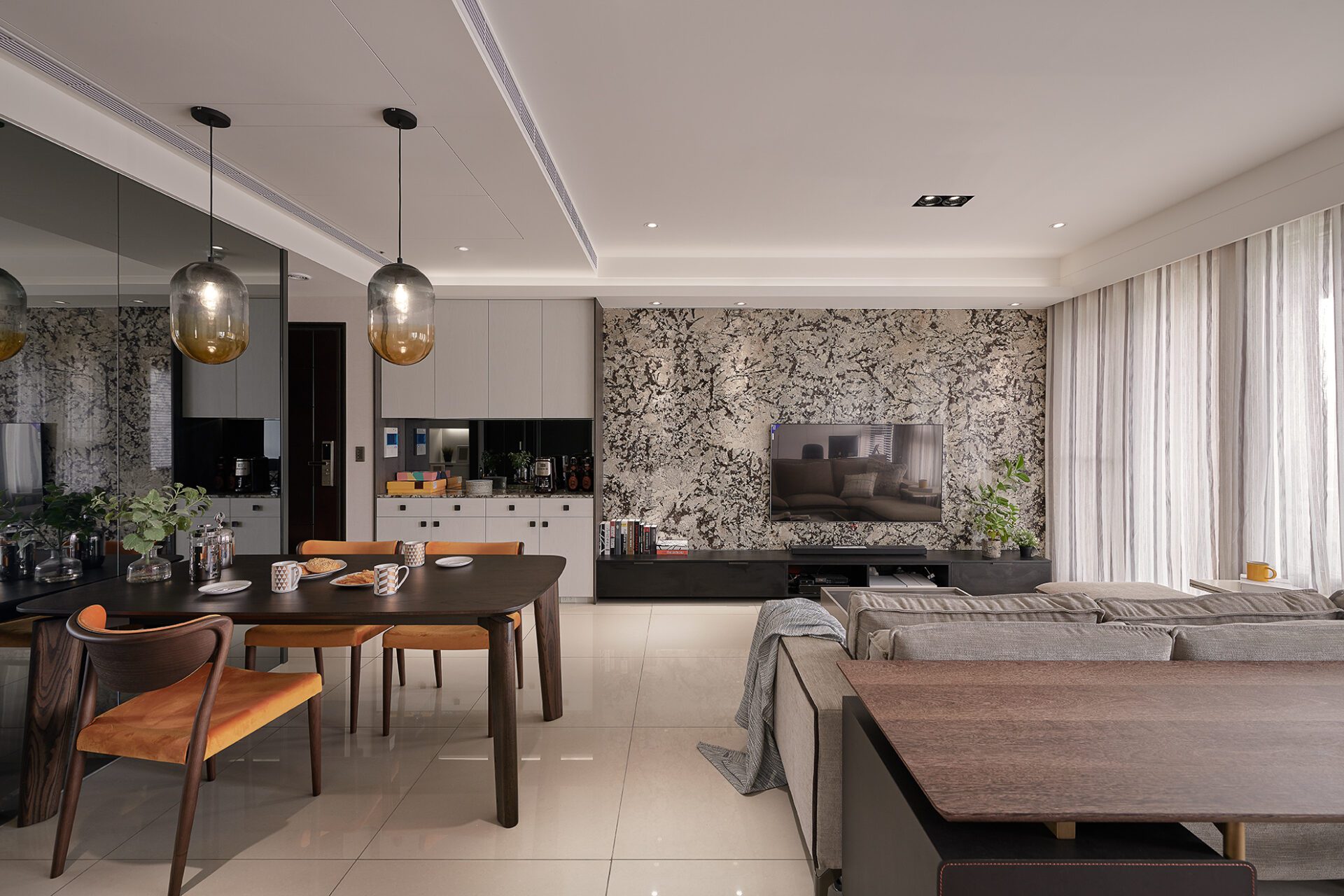 Without altering the layout too much in such a limited interior area, the design was to construct the most optimal visual aesthetics and living circulation, while keeping and addressing such site advantages of natural lighting and vista. With the preferences of the male and female clients in mind, namely the enriched spatial perception and minimalist elegance, respectively, each domain was articulated with various materiality and patterns, manifesting an enriched spatiality of elegance.
