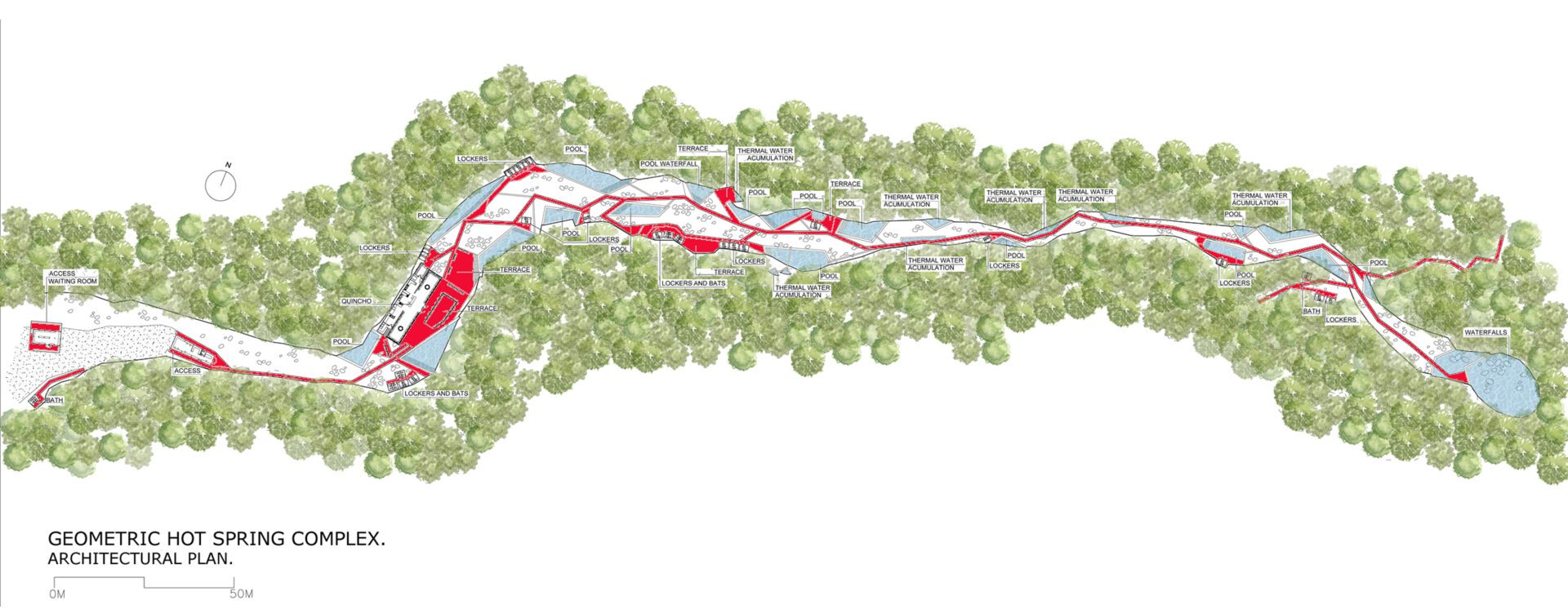 They are named Termas Geométricas because it is a work of architecture built with strong primitive geometric elements that allow one to be captivated again by natural elements in the midst of wild brutal nature.