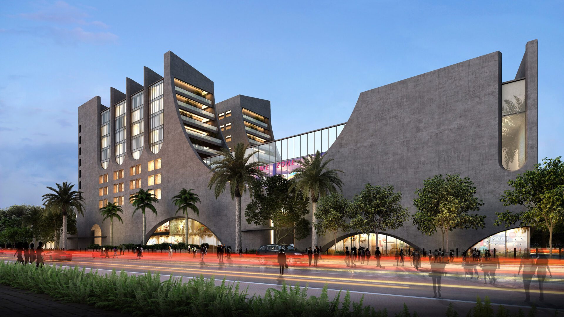 Being 150mt long elevation on west side, it is not advised to have a full length glass in the elevation as it will generate more heat inside the mall, which will not be comfortable to the visitors and in turn Air conditioning consumption will increase. A longer wall can create monotony hence; this solid block is carved with arches to break the façade which also becomes the shop front. In similar patterns scoops were created for individual identity of each zone.