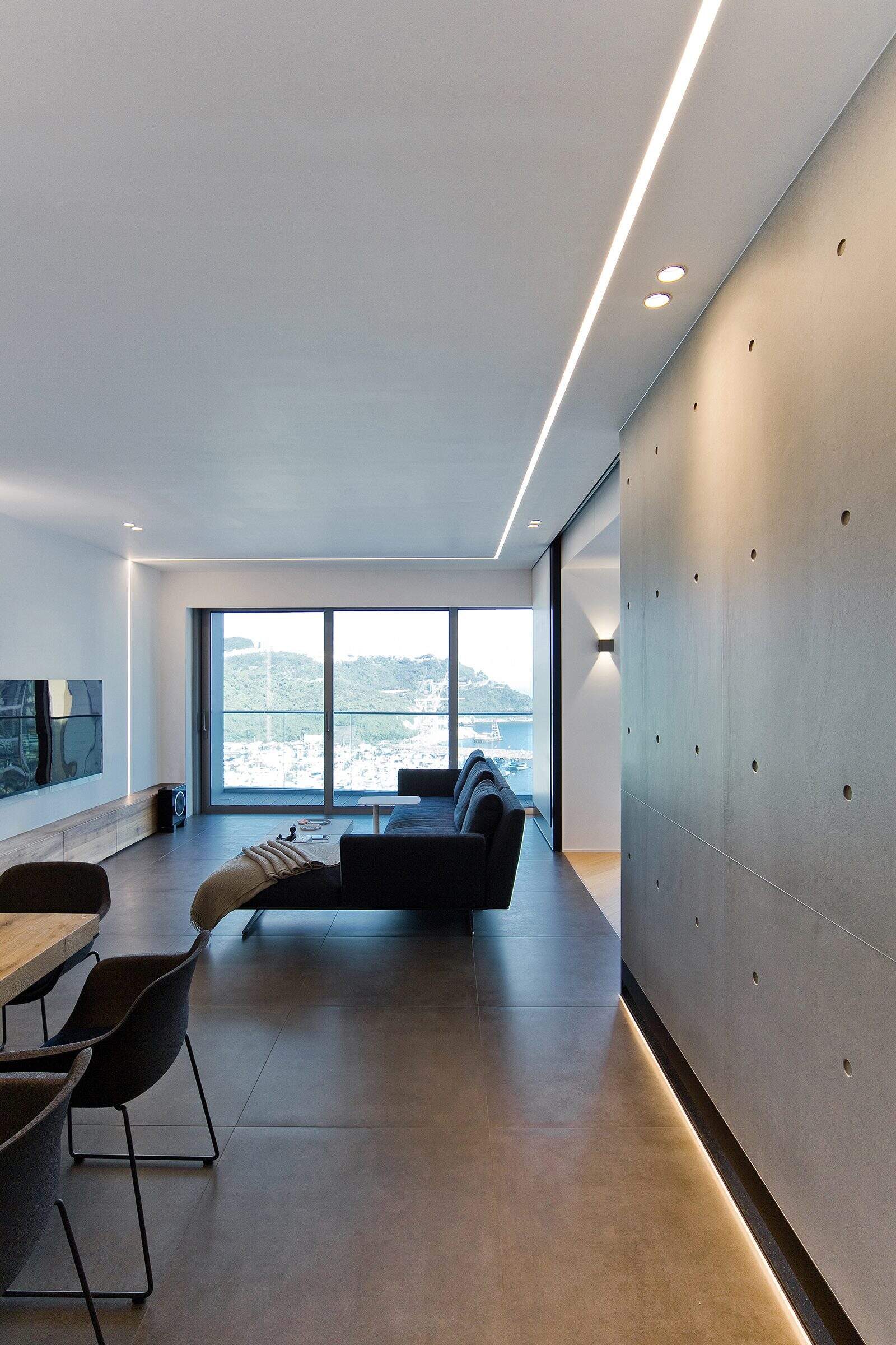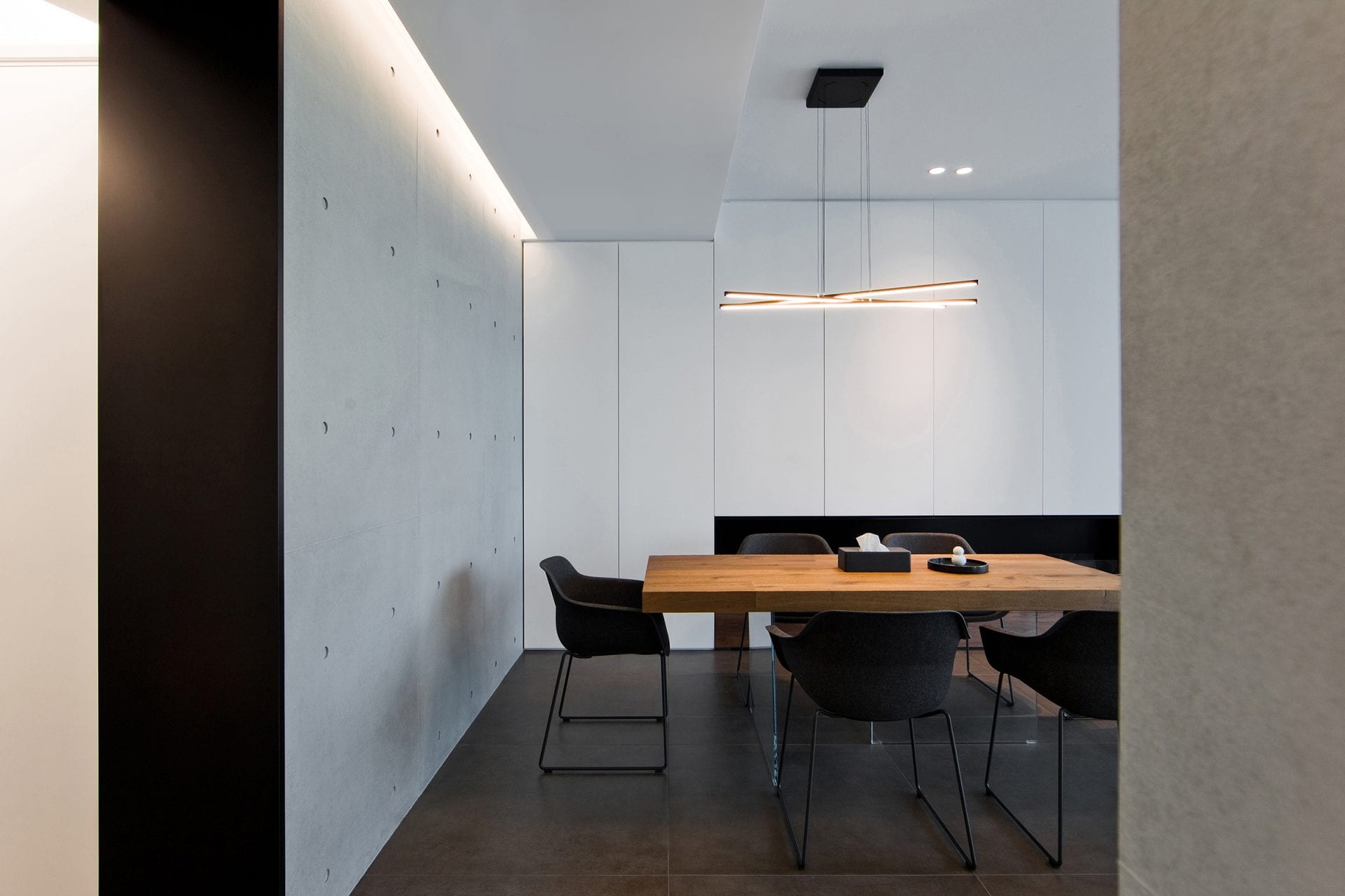 Why is architecture so often represented by the outside, and not the inside? Hong Kong is known for its architecture. But at the same time, towers of plain apartment buildings dominate the cityscape. In this 1,870 sq.ft. apartment, the designer flips it around to bring the architectural design of the outside, in. Concrete forms the foundation of every building. Similarly, the smooth concrete walls of the apartment is the focal point, providing a sleek and clean look that is modern and minimalist. Lighting is another crucial element – not enough and the room would become a bunker. As another tribute to modern architecture, the designer incorporated clean, straight lines from floor to ceiling. The difference between outside architecture and interior design is variability. A sliding door and glass bathroom walls allows the entire space to be open, from living room to bedroom. Yet closed, it provides privacy for the occupant.