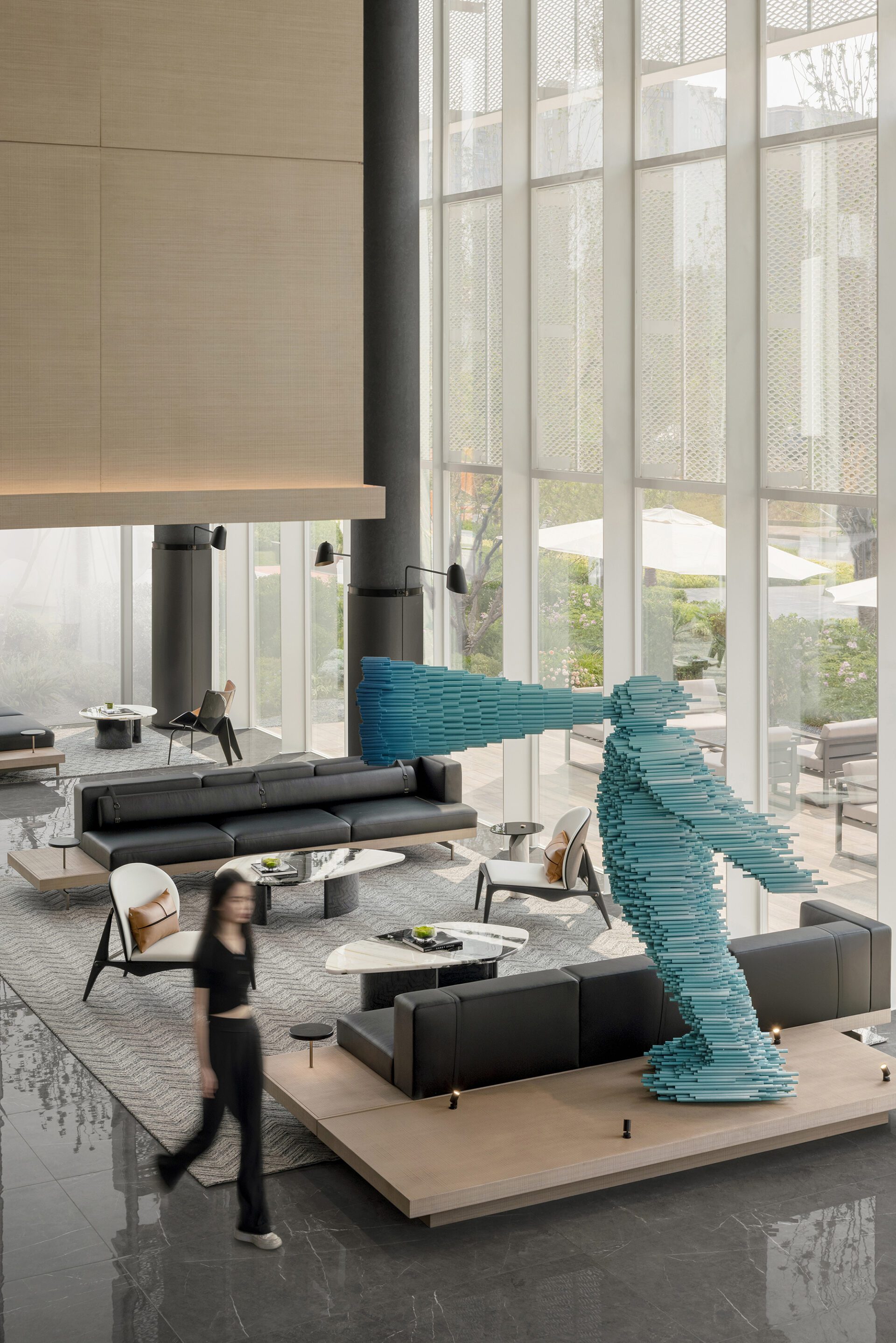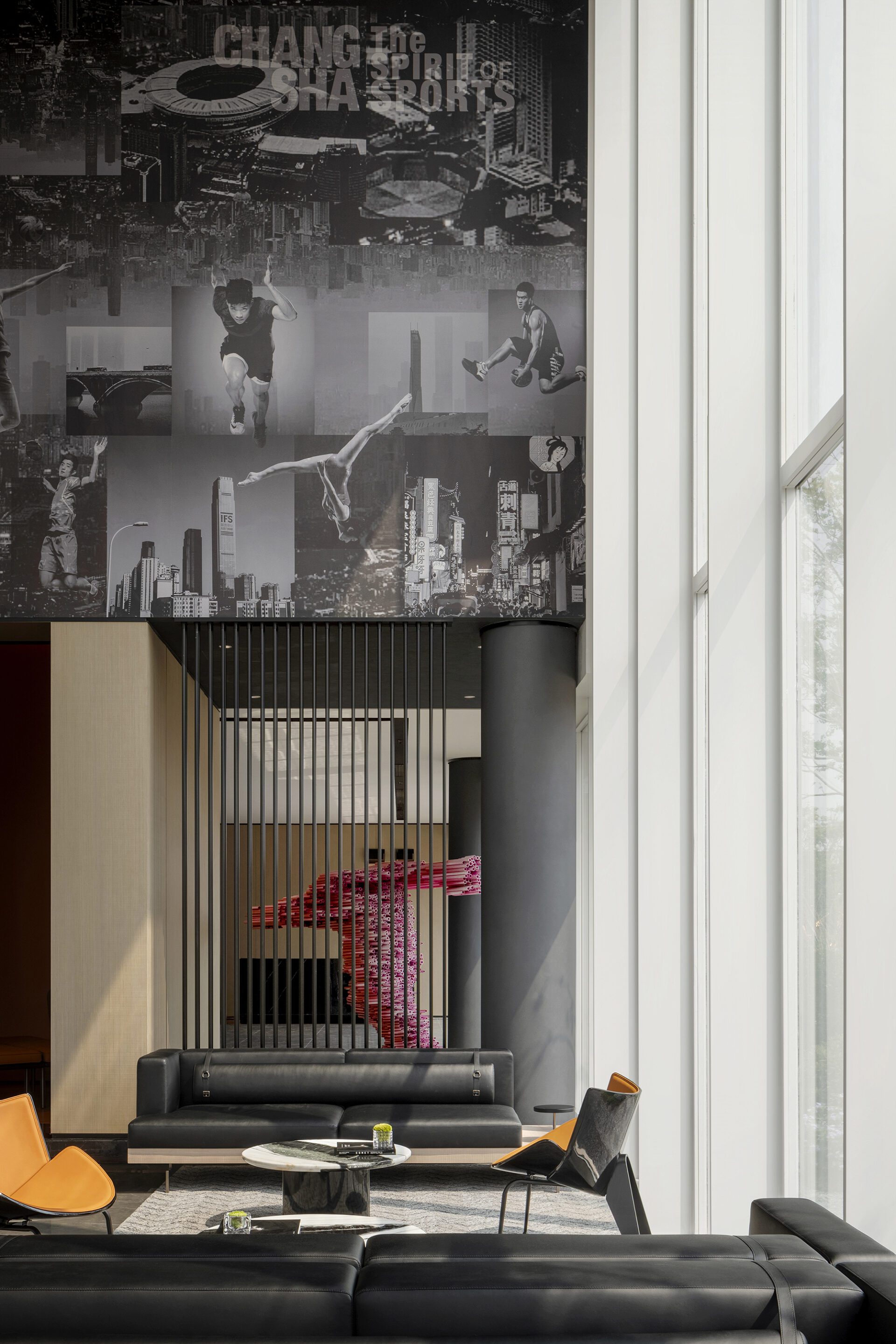 The design originates from the capture of the impression of Star City Changsha. The U WORLD starts with the concept of "Star City" image symbol, continues the exploration of the relationship between design and the city, and injects fresh blood into the city. Generation Z young people's pursuit of health and light lifestyle, apply the pursuit of health and artistic aesthetic translation to commercial space, create an art and commercial space full of youth and trendy life attitude,where people can make friends, read, taste tea and meet guests, which is a new urban experience center in the future.
