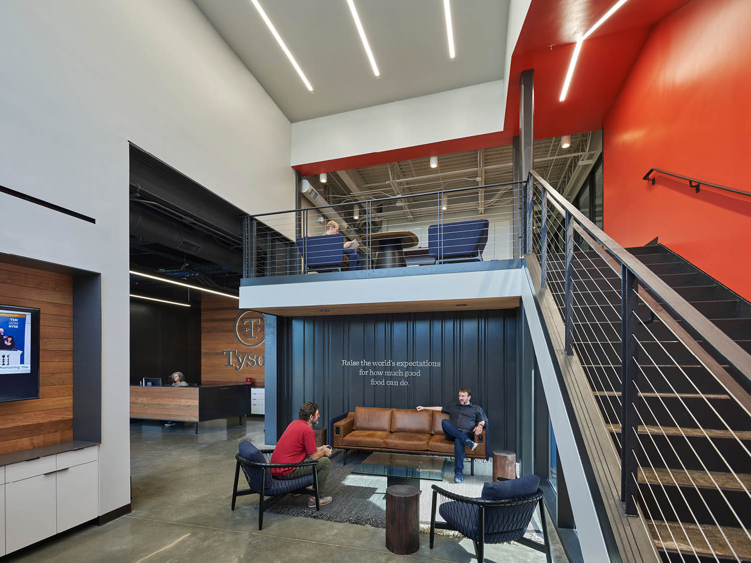 This adaptive reuse development builds on Tyson Food’s commitment to developing and revitalizing downtown Springdale and offers educational opportunities for team members to collaborate with schools and the local community. The new building captures both the structure’s original industrial character and Tyson’s vision for innovation.