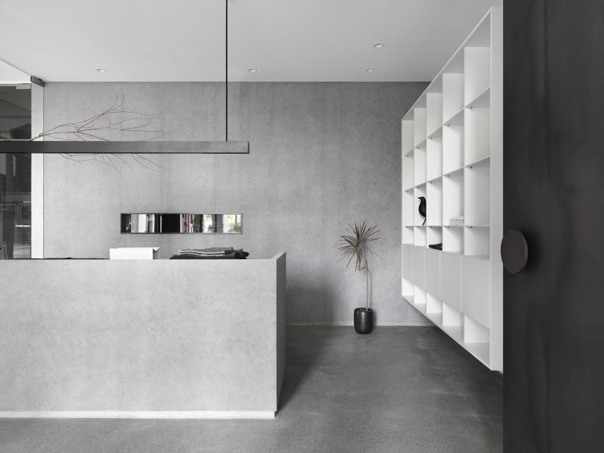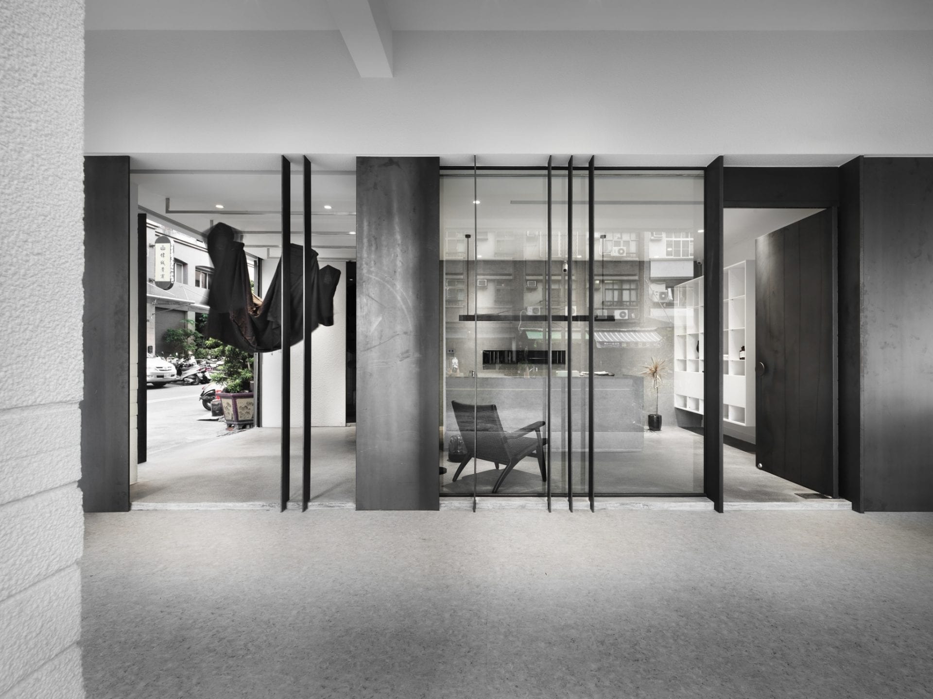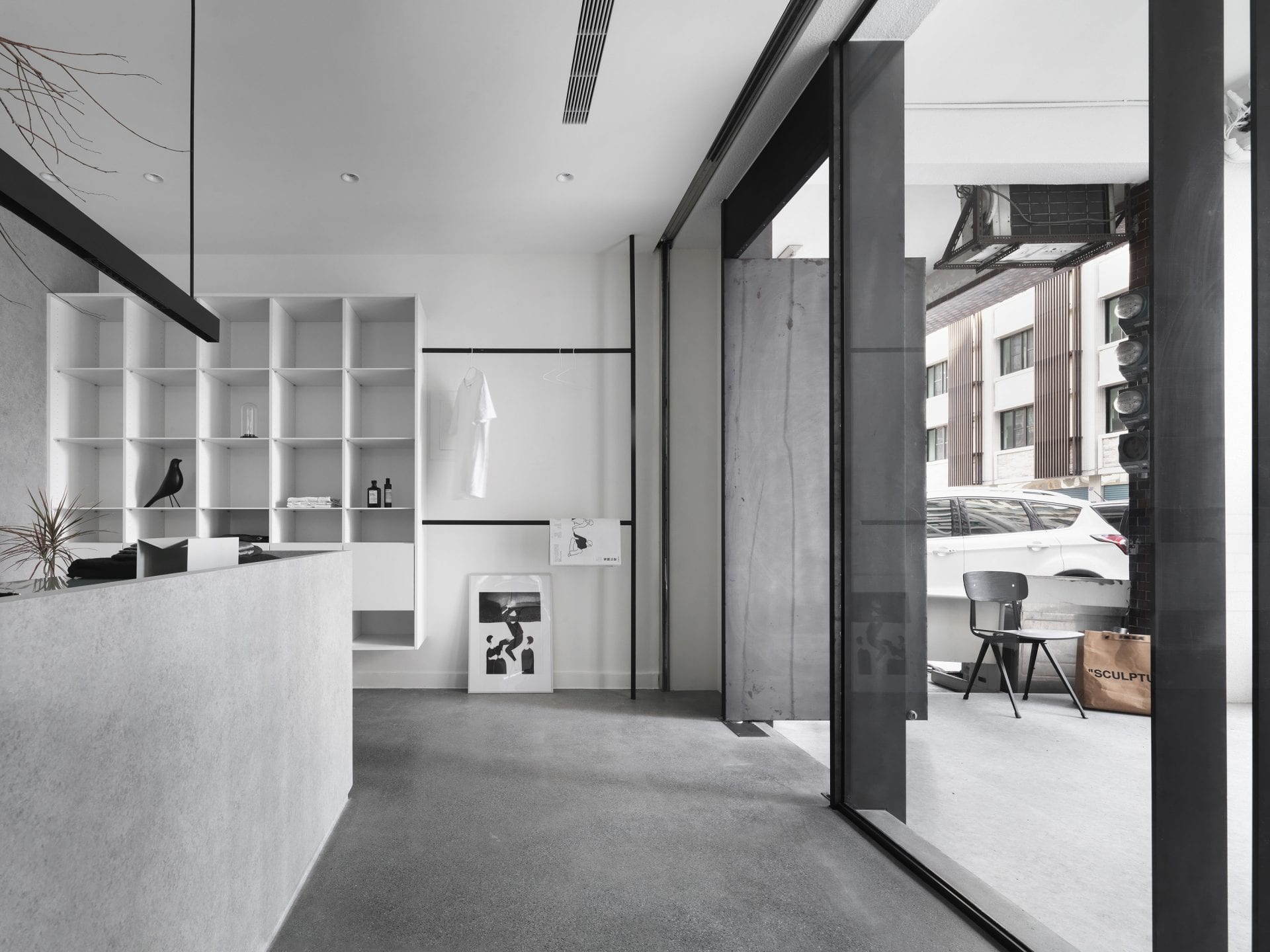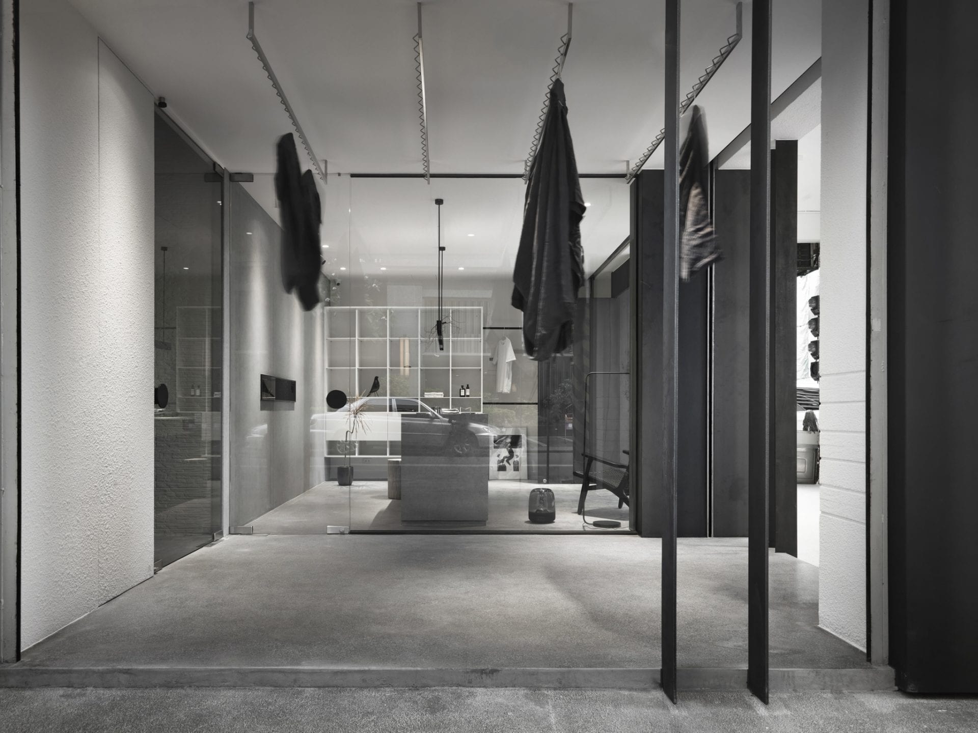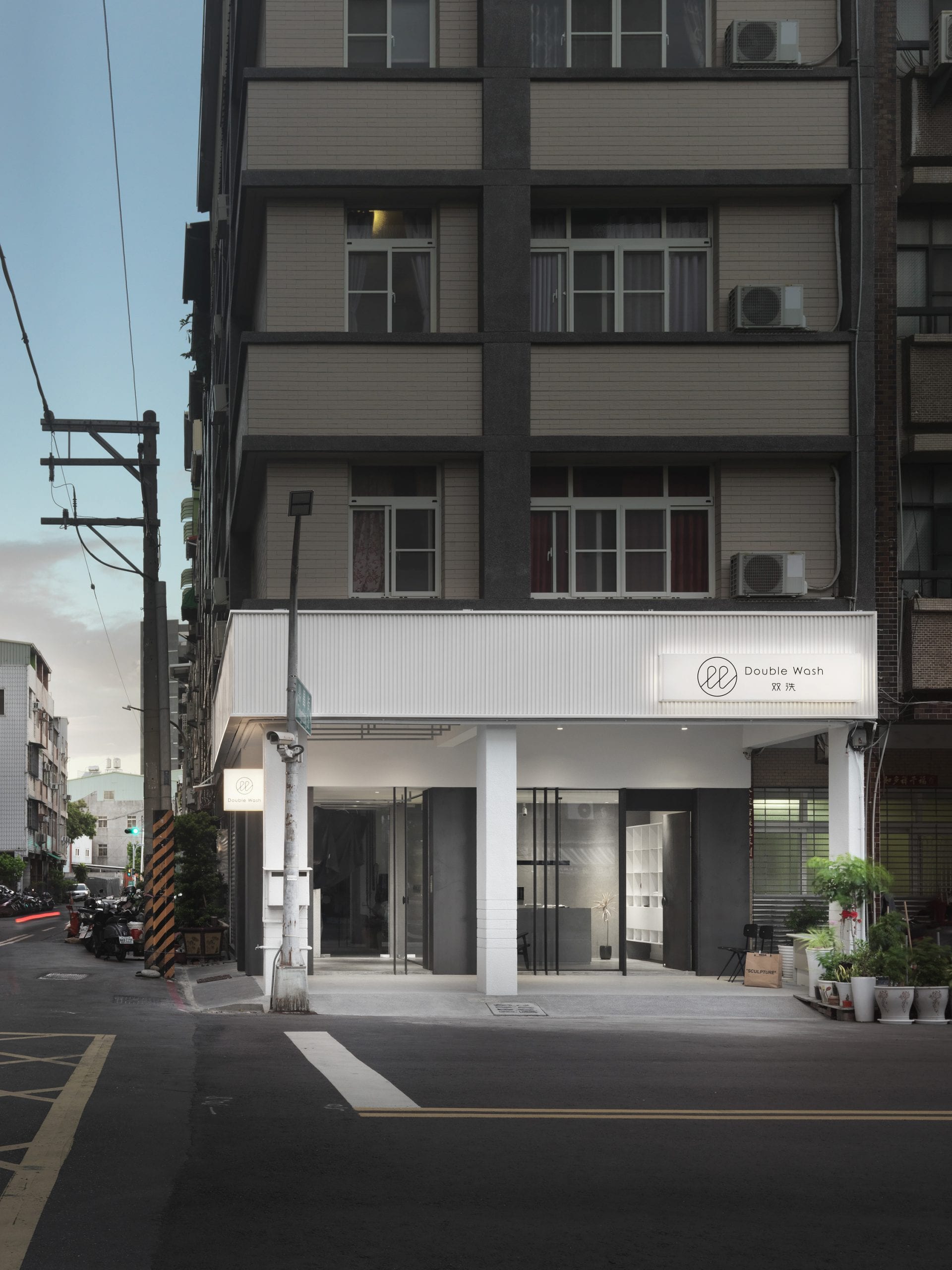 A tidy and clean traditional laundry located in two rows of street houses. The steel plate is used to integrate the scattered columns of the two arcades to cut out the semi outdoor space, which highlights the skills of the laundryers for displaying and hanging clothes. Simplified materials create orderly lines, and shake off the miscellaneous impression of traditional laundry.