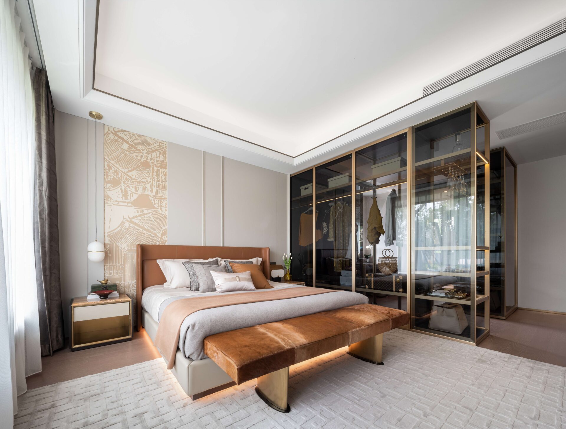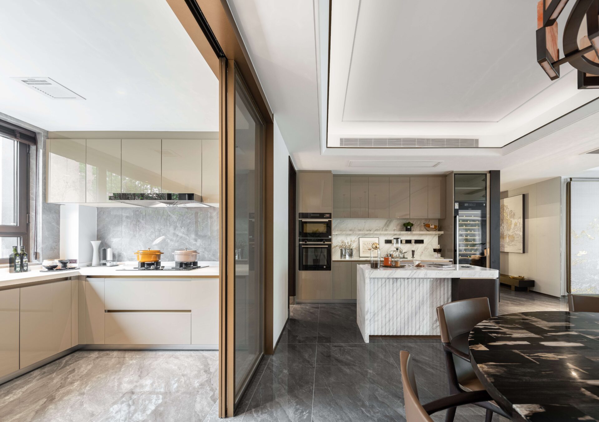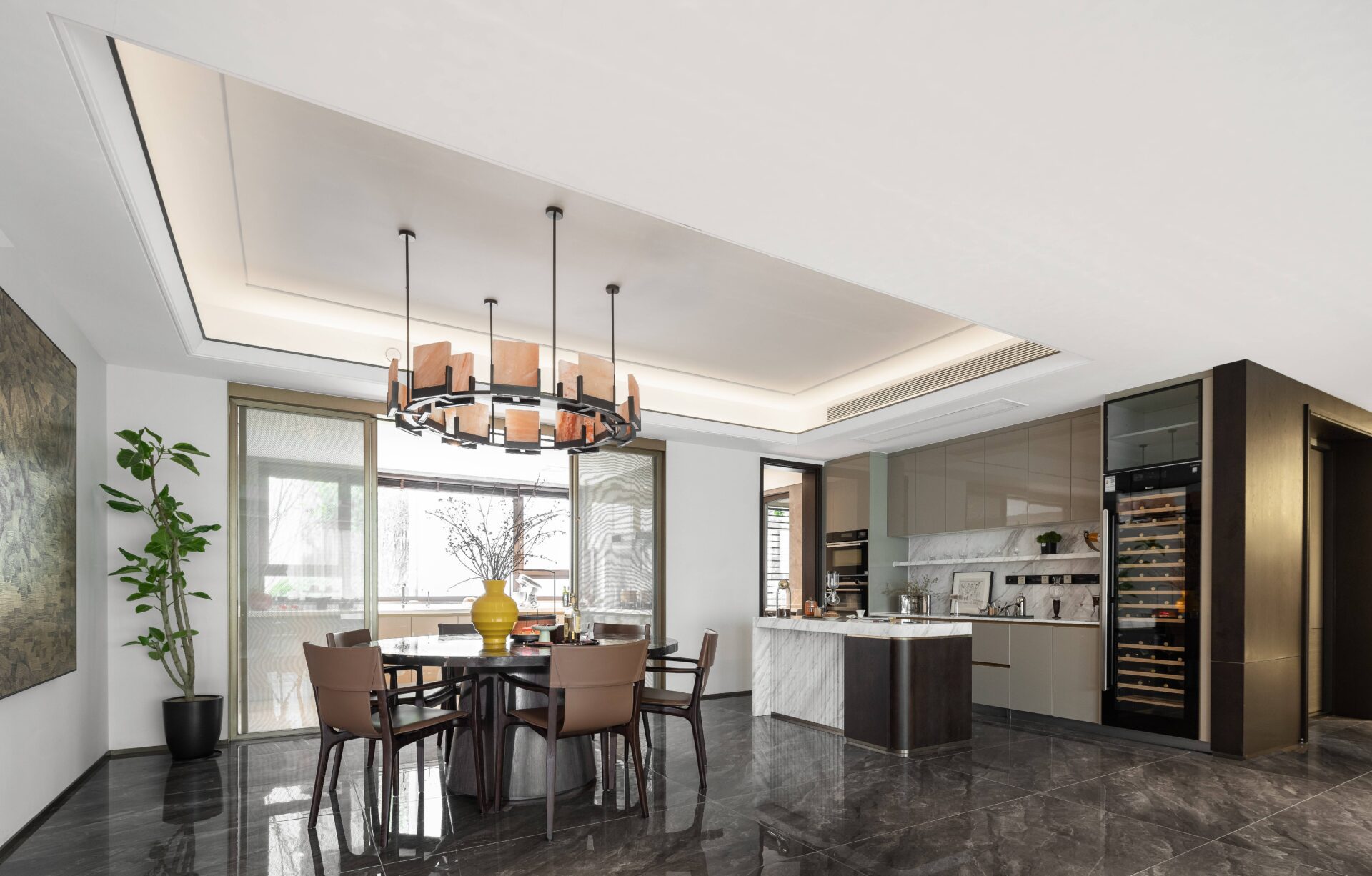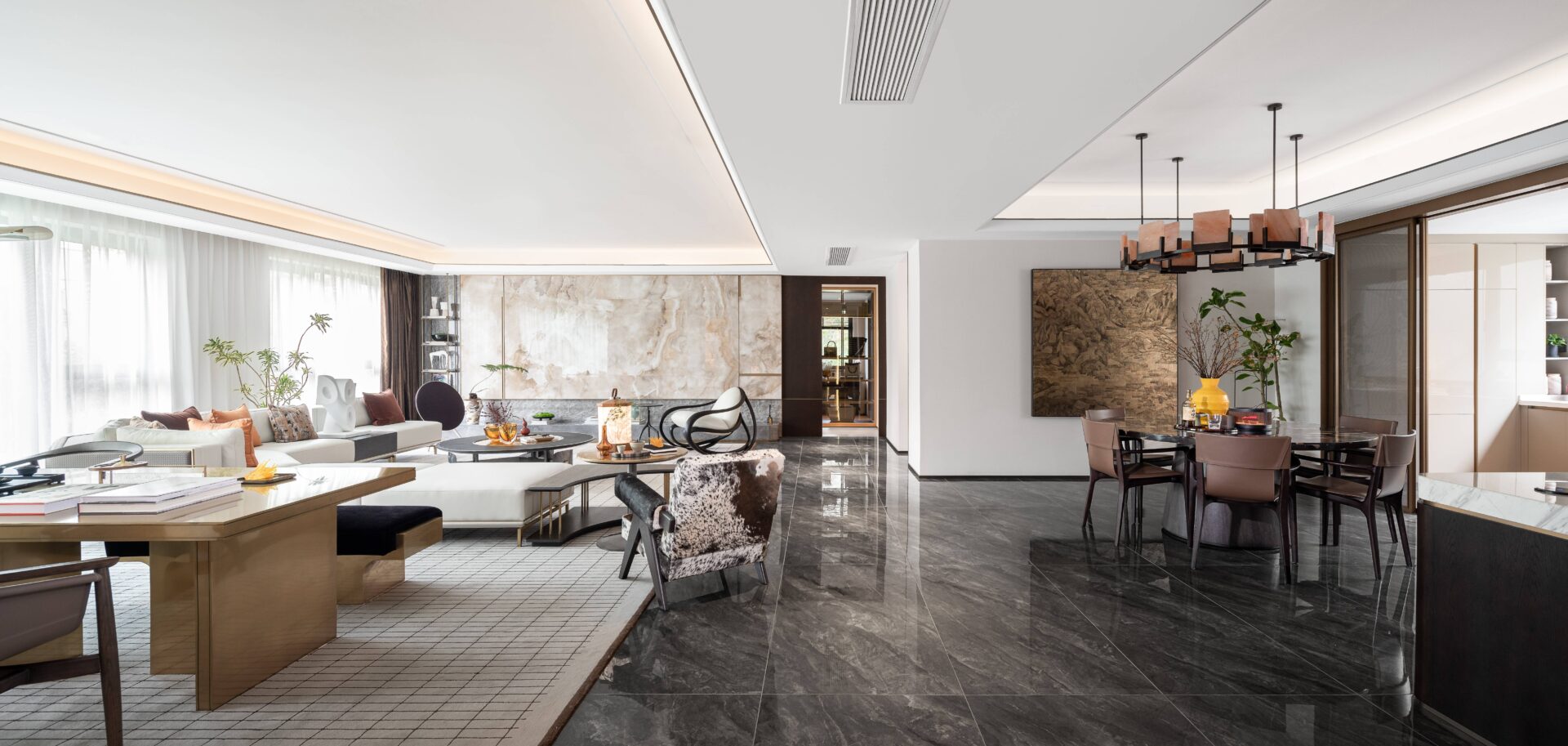 In the interior design of the Yun Park project, the designer focused on creating an elegant and uncompromising quality of space. Whether it was the artistic expression of the furniture or the unique selection of accessories, all of which were an expression of the care for the homeowner's experience and Italian aesthetic style. As Mary Crouse said, 'Art is not on the wall, but is deeply rooted in your perception.' The large area of gray and white tone with an open layout, while rendering the overall mood of space without losing calm and restraint, creates a modern urban area with luxury quality and contemporary spirit. The yellow color accents create a pleasant and energetic space atmosphere, giving positive emotional feedback. Leather, metal, and wood materials achieve aesthetic unity in dynamic balance and convey a harmonious visual effect. The designer team also introduces the element of ink and oriental as the background wall, poetic and elegant design language, constructing an architectural system that intertwines and integrates classic oriental aesthetics with modern and supreme craftsmanship.