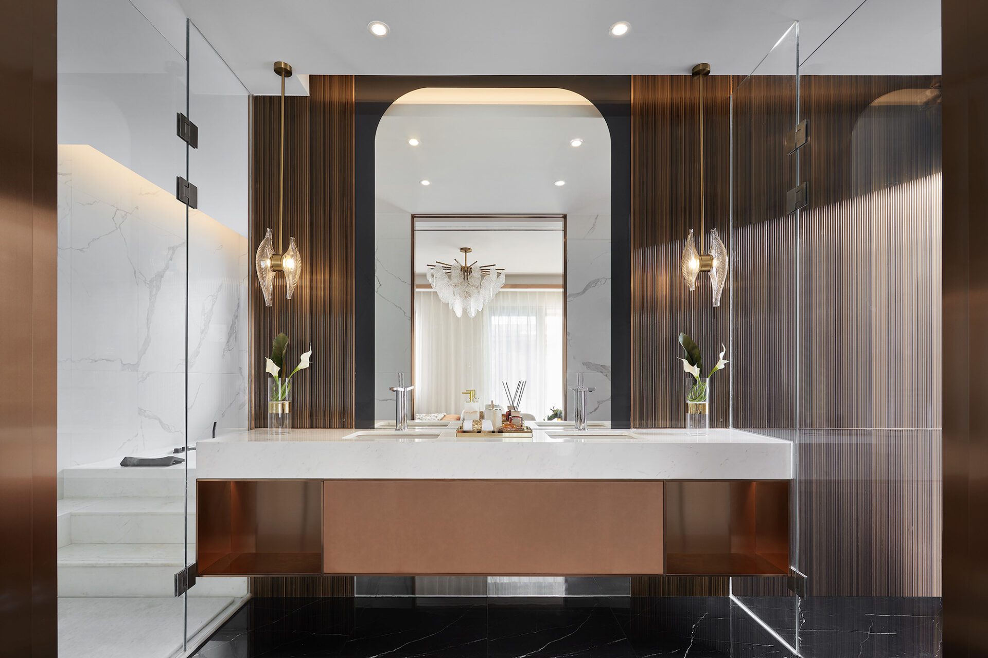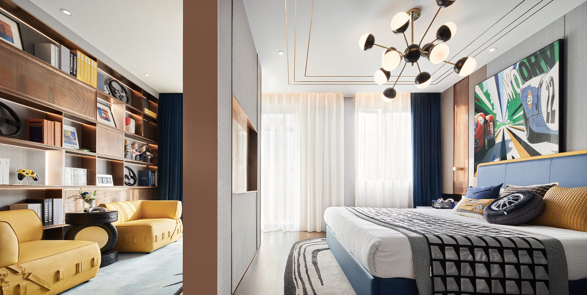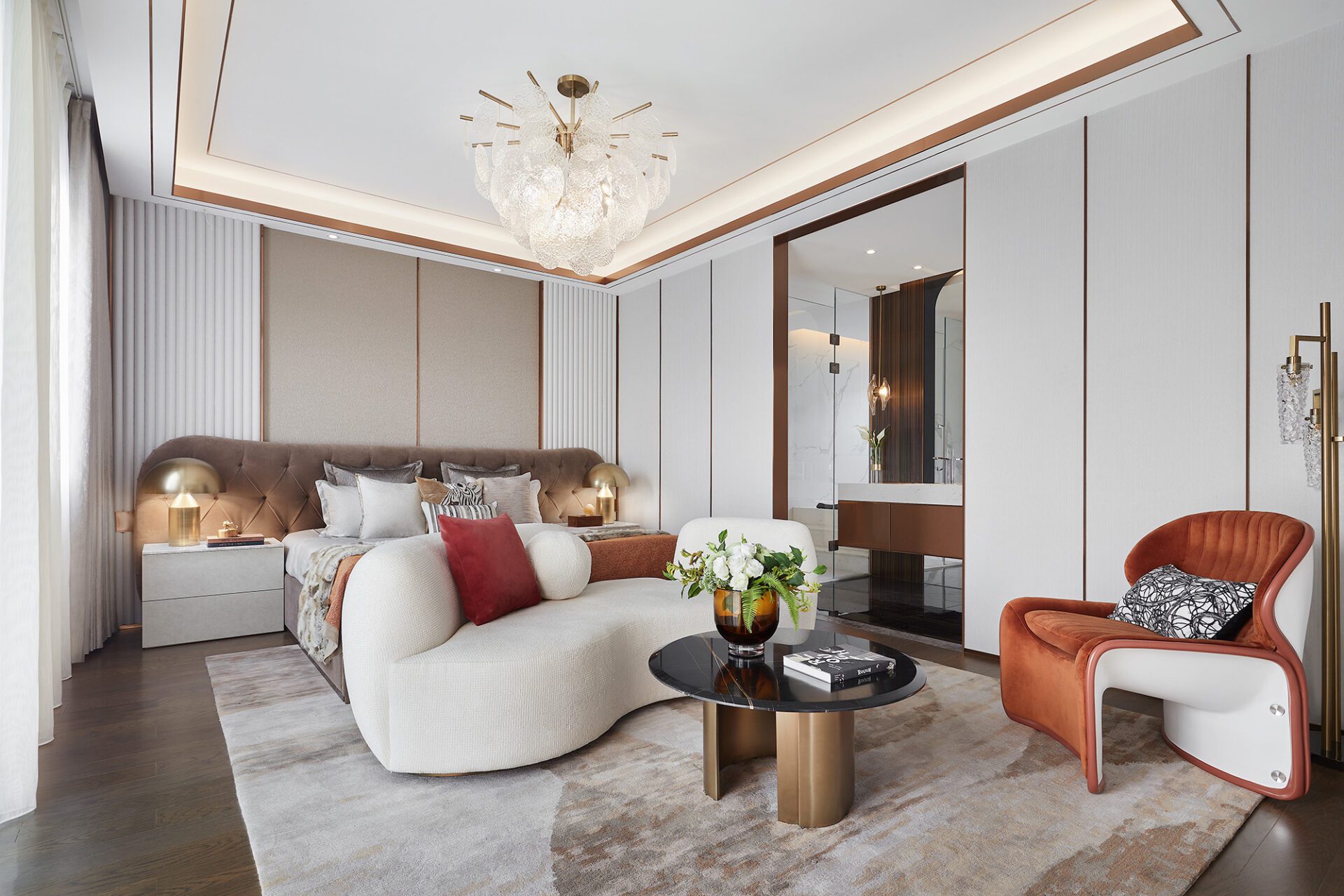 With thoughtful consideration, a wide range of facilities that enhance comfort and convenience is installed to serve multiple functions in each private bedroom. The designer accurately determined the ratio scale, and fully considered the feeling in each inch of space, composition aesthetics, and texture of details. Finally, practicality, comfort and detail aesthetics are combined.
